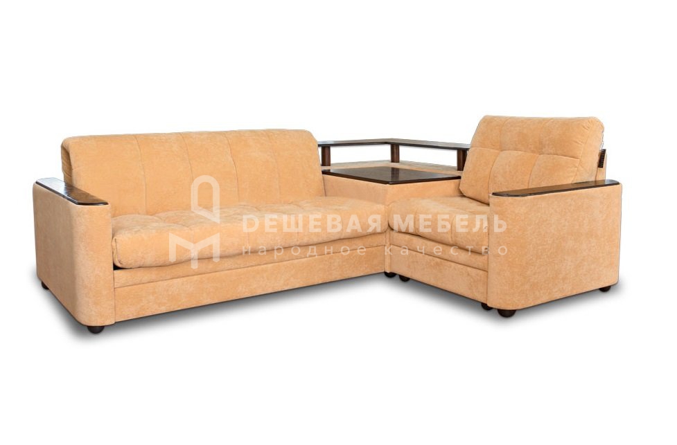 - Угловой диван с откидным столиком на газовом толкателе и отделением для хранения;