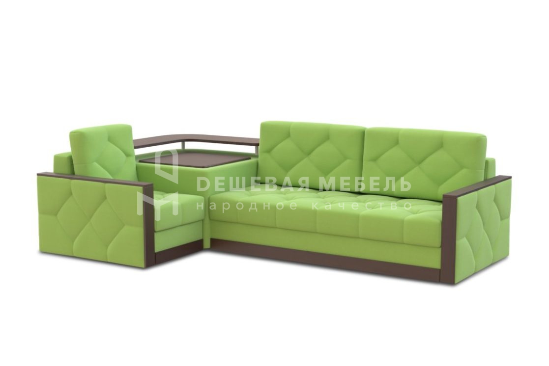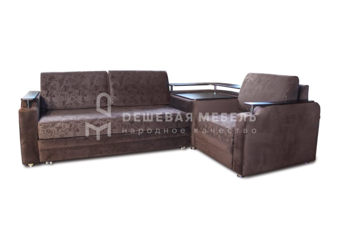 - Угловой диван с откидным столиком на газовом толкателе и отделением для хранения;