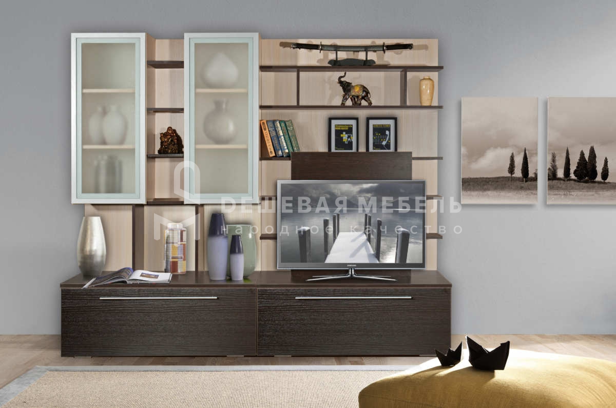Расцветка «Беллы» понравилась жене, я поначалу был не в восторге, сейчас уже соглашаюсь с ней, гостиная действительно смотрится хорошо. Собирал сам, каких-либо изъянов на фасадах не обнаружил, фурнитура хорошего качества, сборка особых хлопот не доставила.