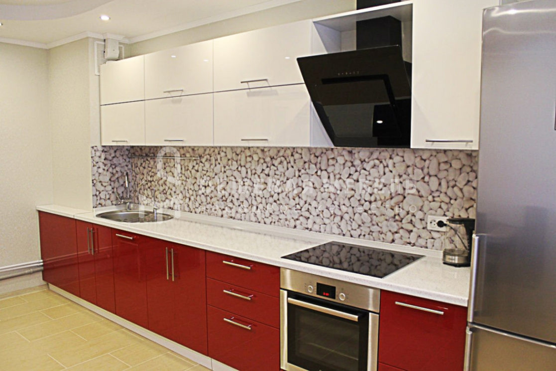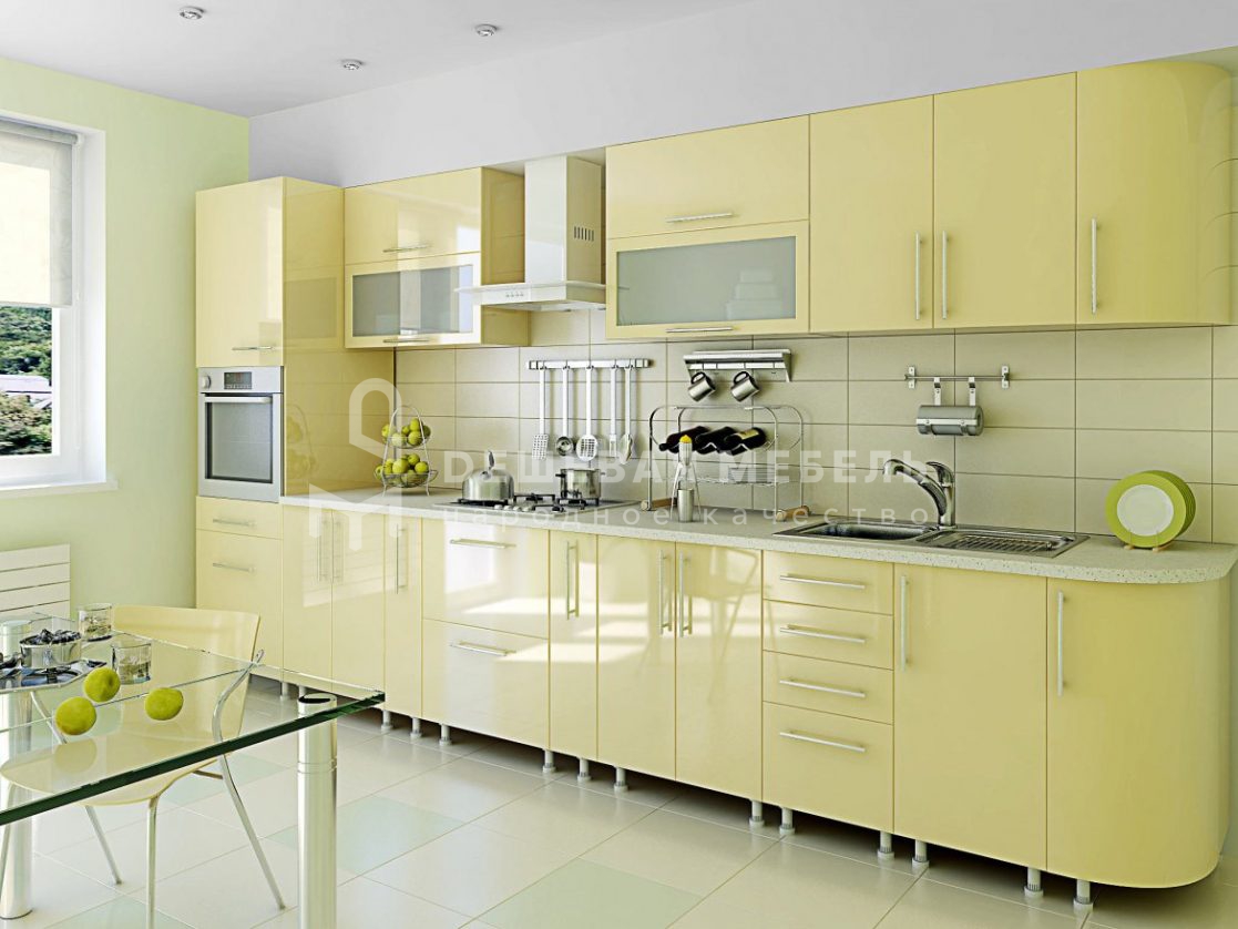 Красивая и стильная кухня. Из — за того, что материал глянец, мыть ее очень легко и просто. Она выглядит всегда новой и ухоженной. Хорошие и удобные дверные ручки. Довольно-таки вместительная. Рекомендую.