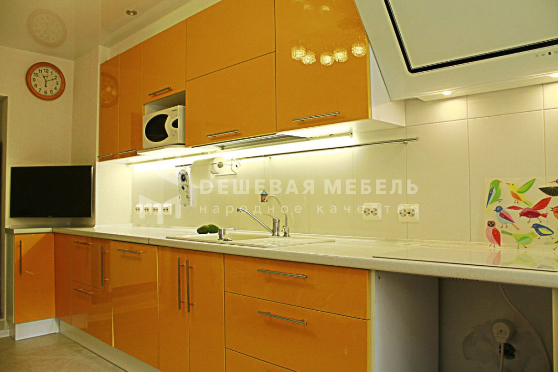 Большой выбор цветов и фактур, есть где разгуляться и из чего выбрать кухню под любой интерьер. Мы решили взять яркую кухню оранжевого цвета (цвет вызывает аппетит) и не прогадали. После установки гарнитура, всё помещение прям ожило и наполнилось красками. Мы очень довольны покупкой, тем более за такой бюджет! Спасибо.
