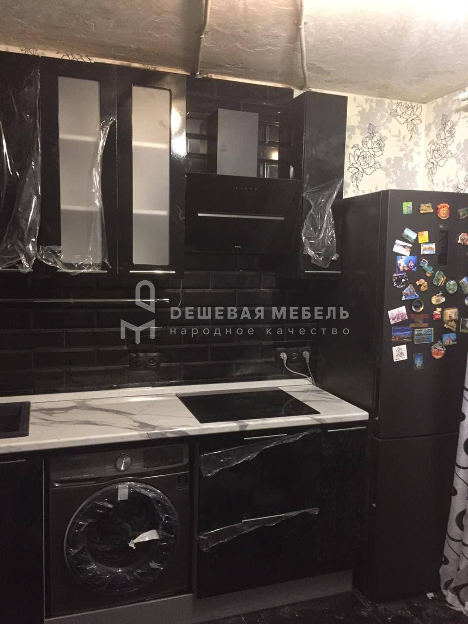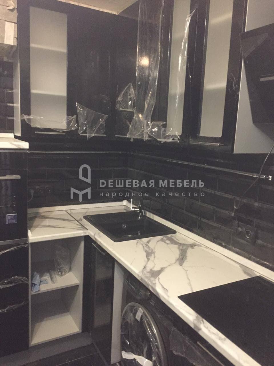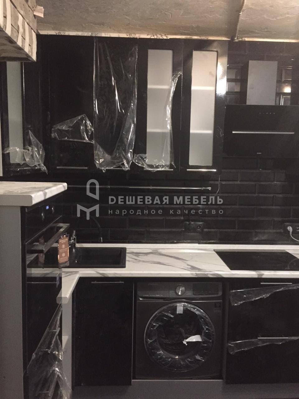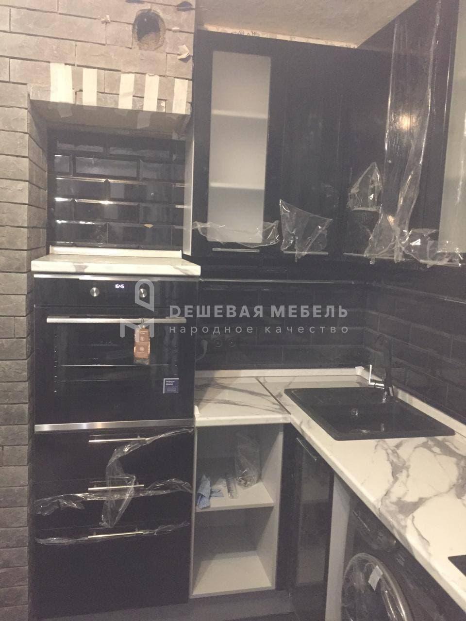 Заказывали угловую кухню черного цвета под наш интерьер в квартире. Глянцевые фасады с глянцевым фартуком смотрится просто идеально, рабочая зона удобная, техника встала без проблем. Монтаж выполнили аккуратно, фасады отрегулировали, нигде ничего не цепляет. Особенно порадовала столешница под мрамор — красиво и практично в уходе. Кухня получилась именно такой, как хотели.