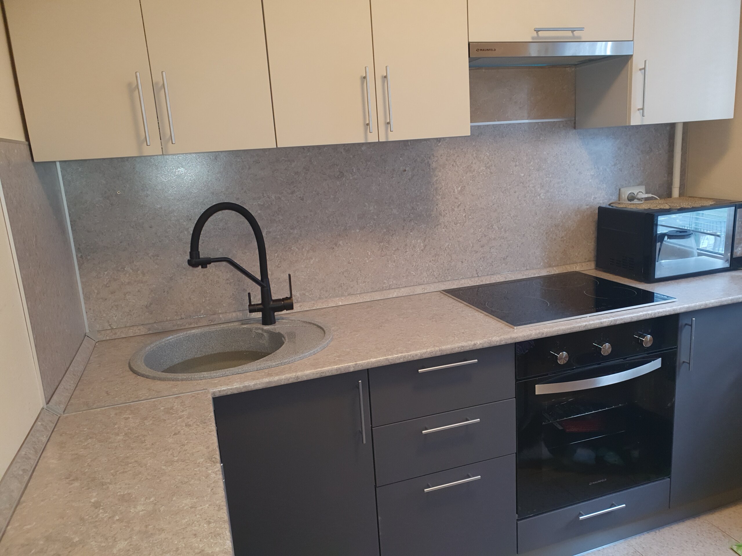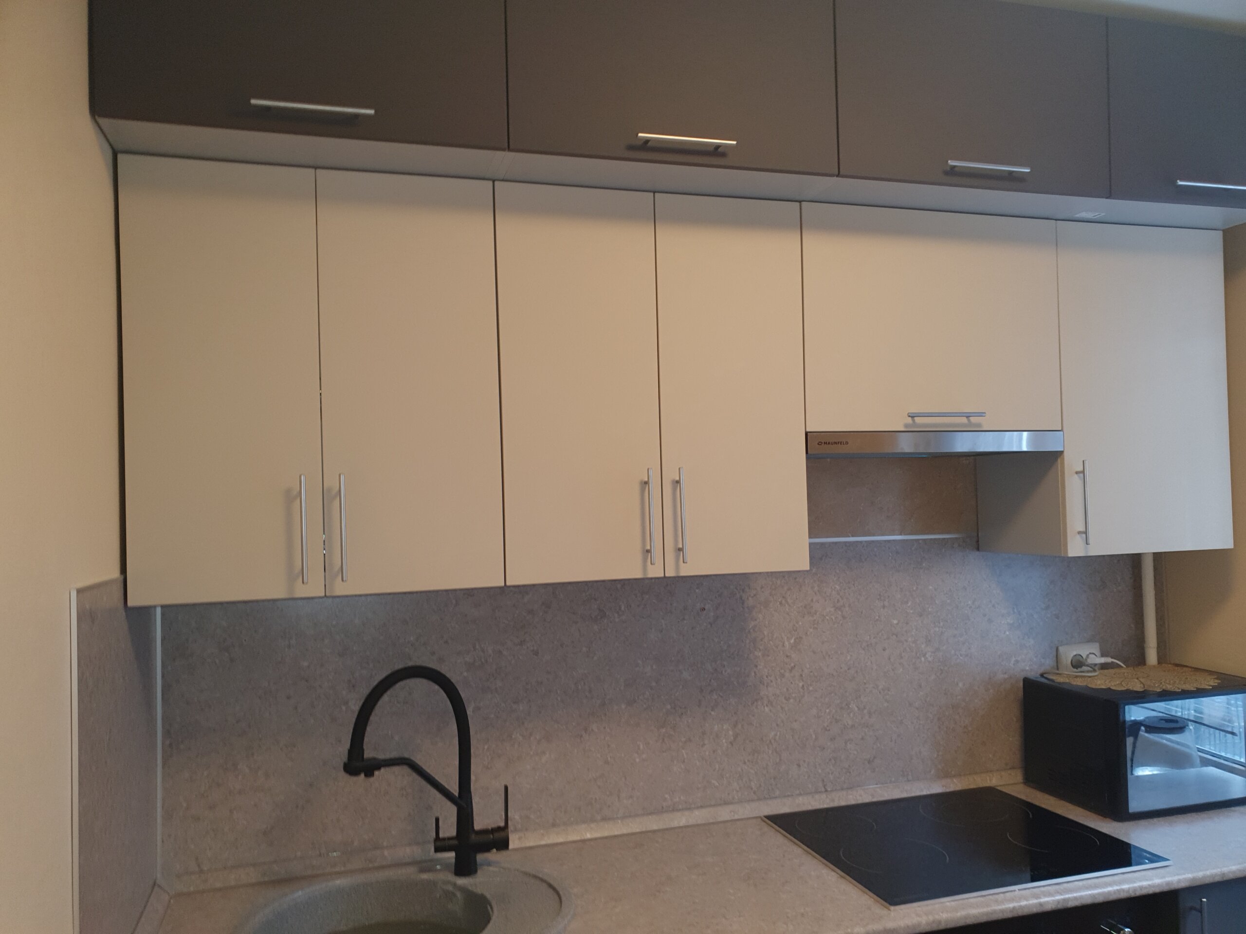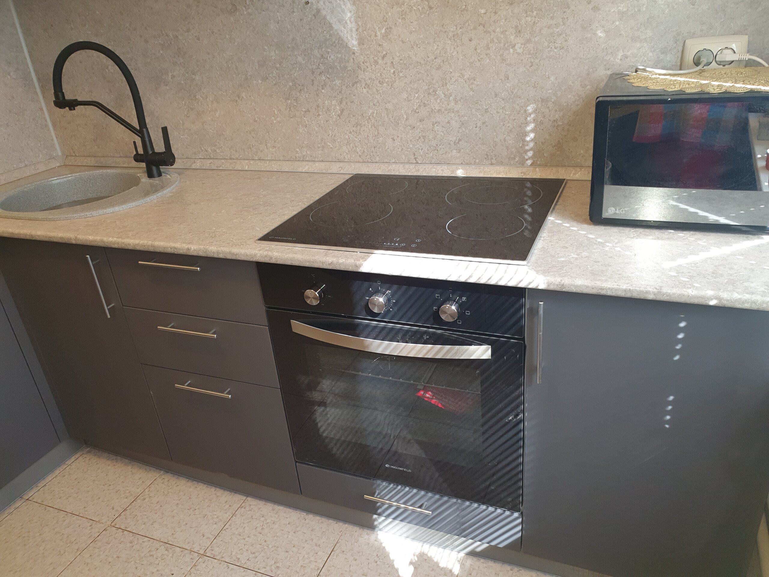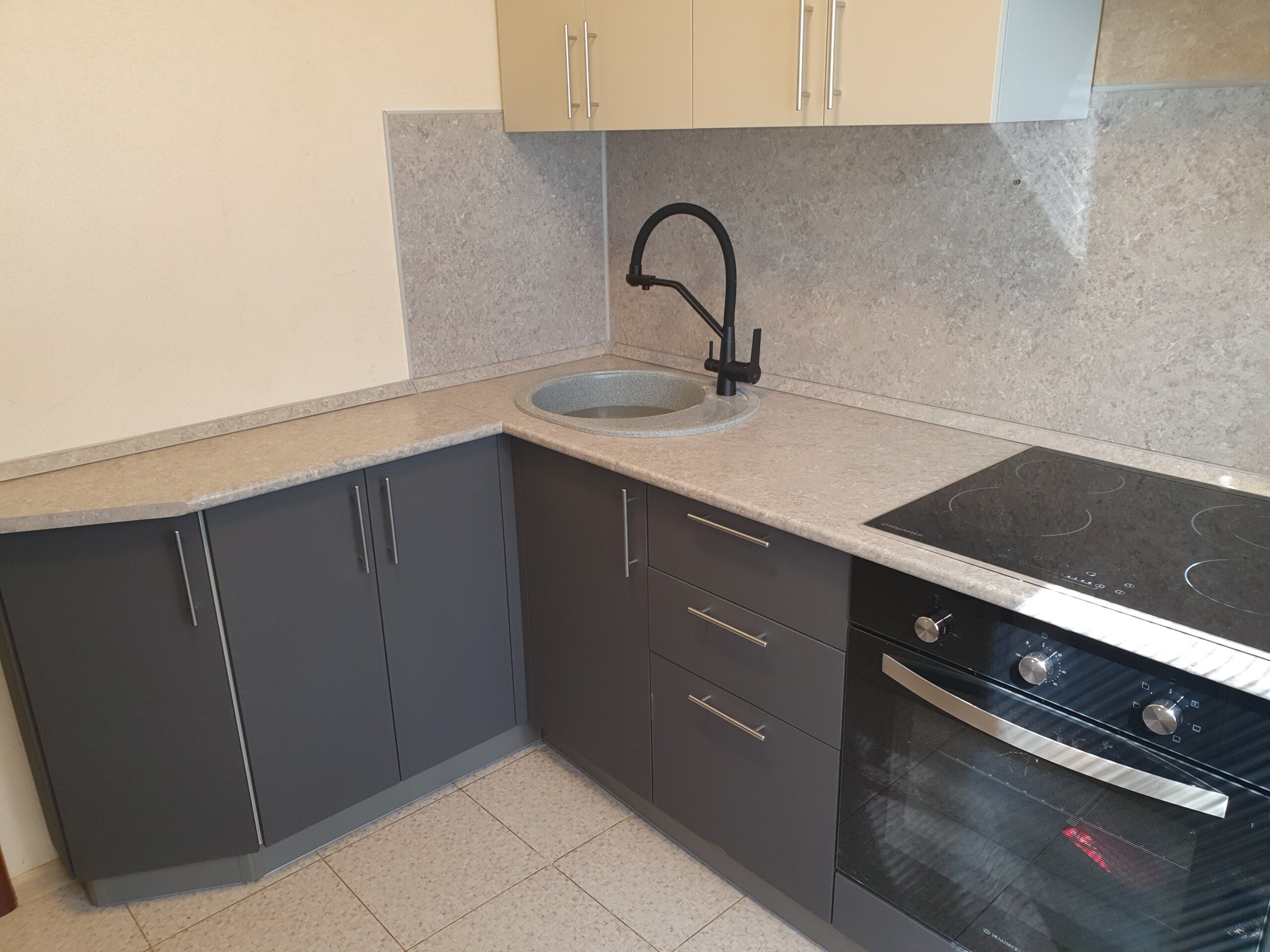 После косметического обновления «бабушкиного» ремонта, искали профессионалов — Дешевая Мебель — однозначно можно рекомендовать всем близким людям! Наша мини-кухня стоит уже несколько месяцев и мы очень довольны. При общении с консультантом Татьяной, сразу обозначили, что хотим максимально использовать всю рабочую площадь, т.к. само помещение слишком маленькое. Татьяна нам предложила несколько вариантов проекта кухни, с разным наполнением. Определились с тем, который был с большим количеством полочек и отделений. По срокам изготовления — вышло около 2 недель. При монтаже были вопросы, в основном из-за неровностей стен, но все получилось на 5+.