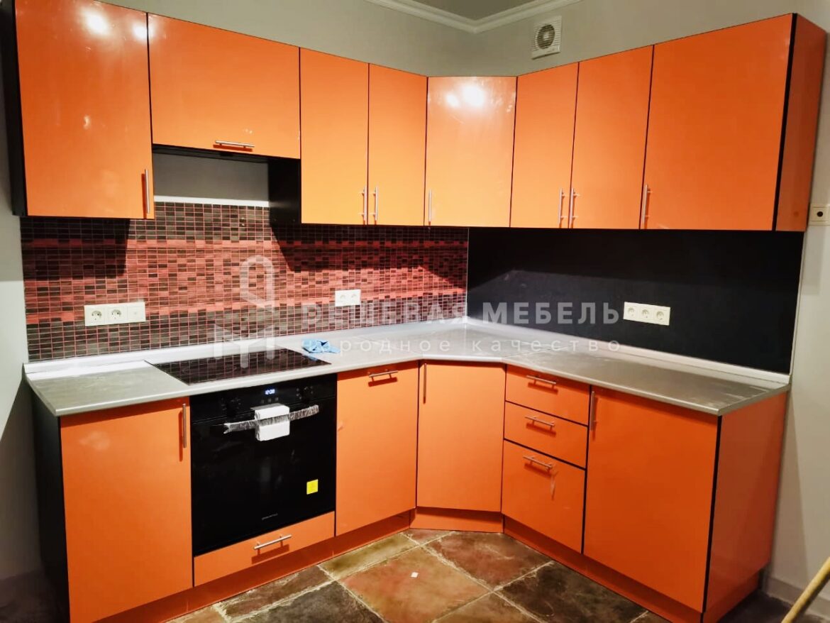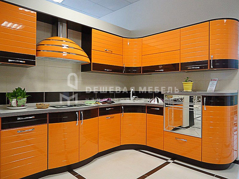 Угловая кухня из глянцевого МДФ "Природа арт.2" с вогнутыми фасадами