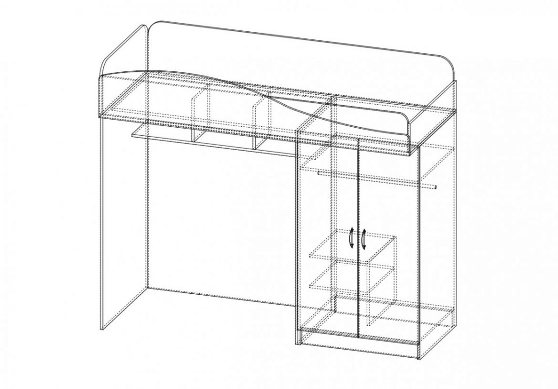 Кровать-чердак со шкафом (ШхГхВ): 2032х832х1760