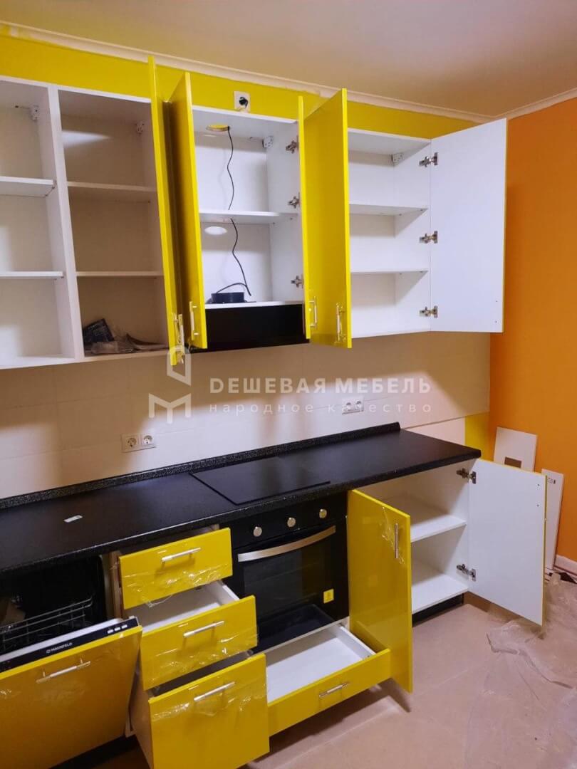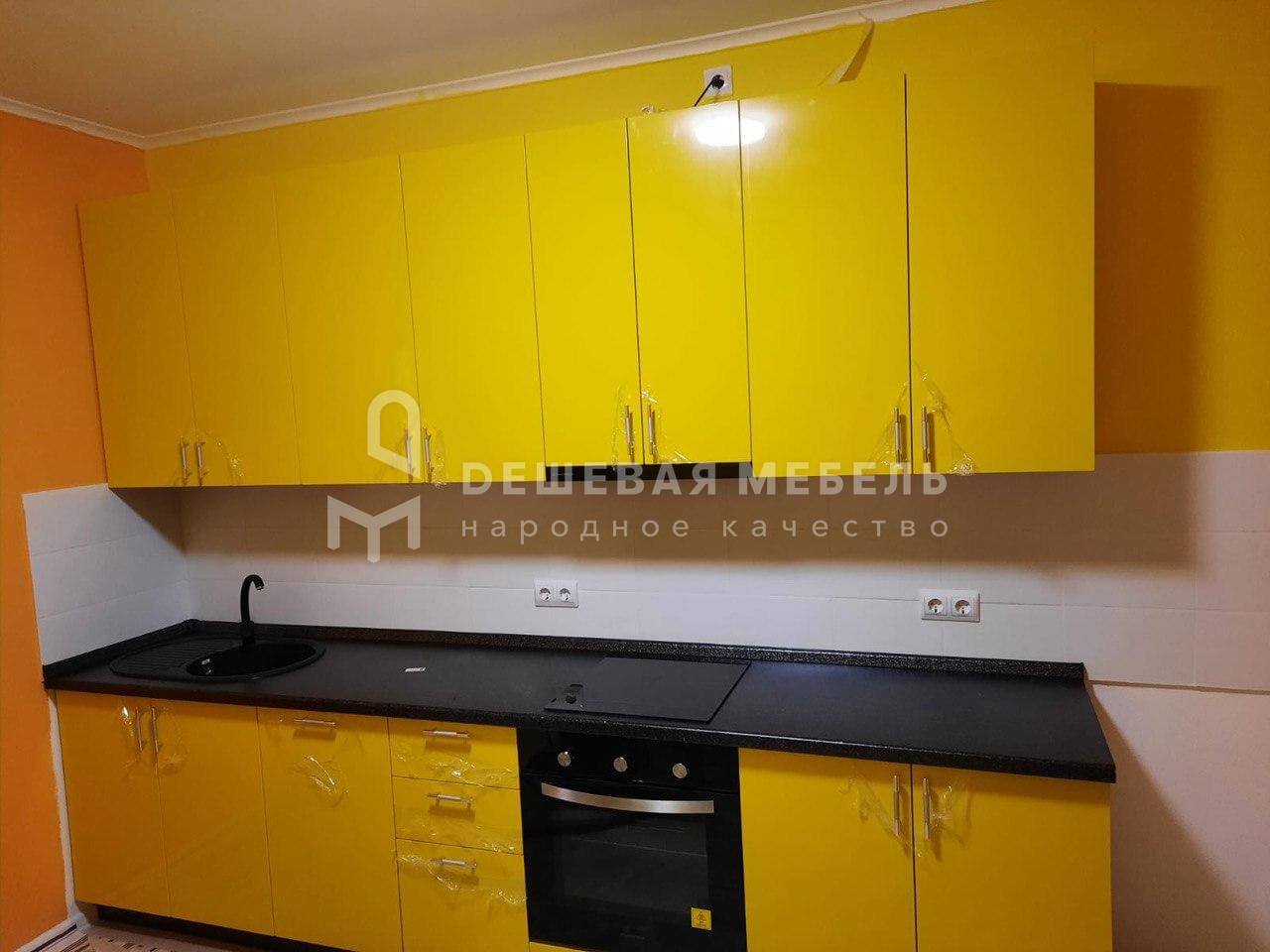 Желтая глянцевая кухня "Стайл арт.42" из МДФ