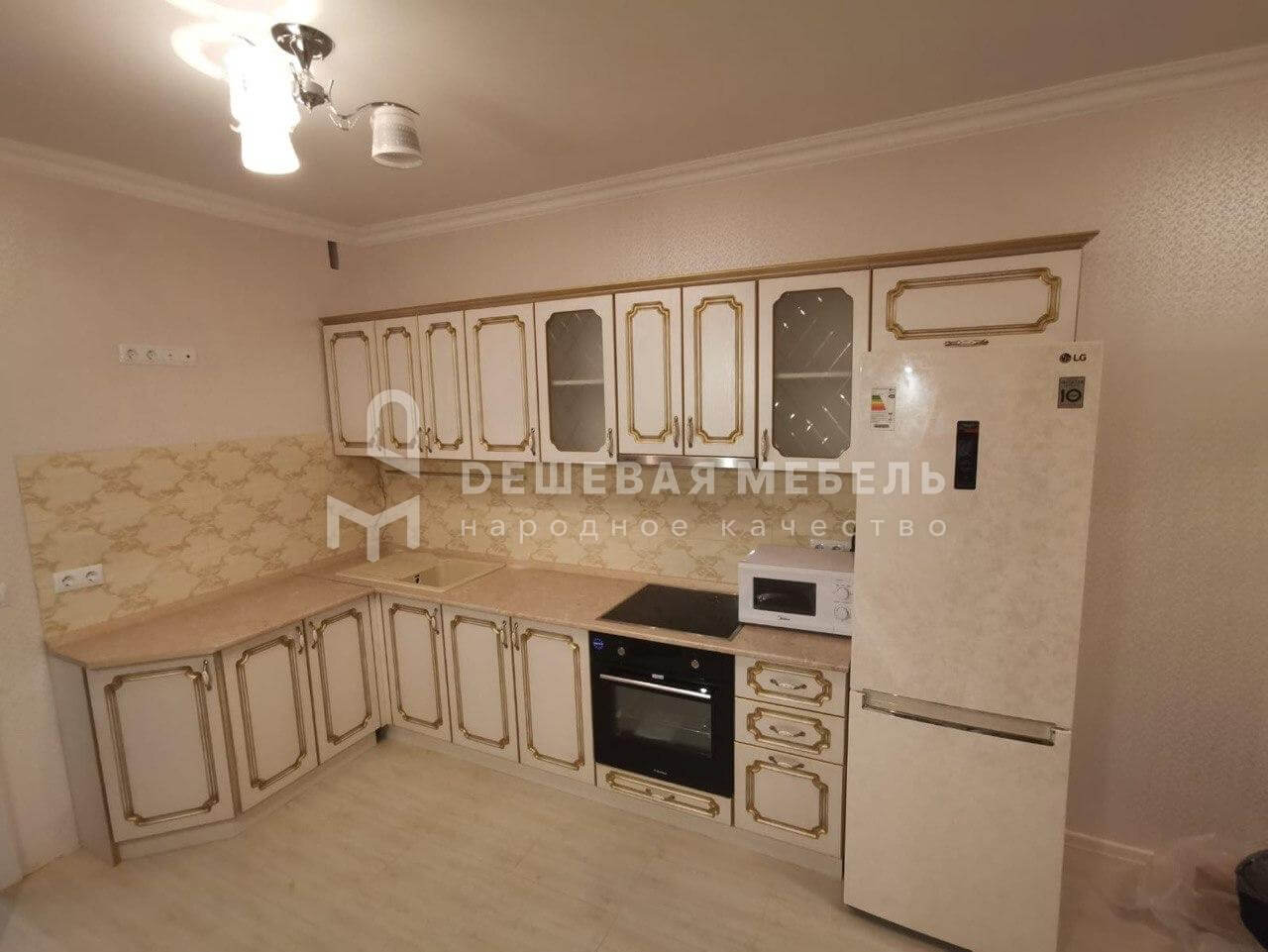 Неплохая расписная угловая кухня, которая реально понравится тем людям, которые любят кухни с роскошными элементами. Вообщем, кухня смотрится довольно солидно и богато! Достойный выбор за вполне недорогую цену..
