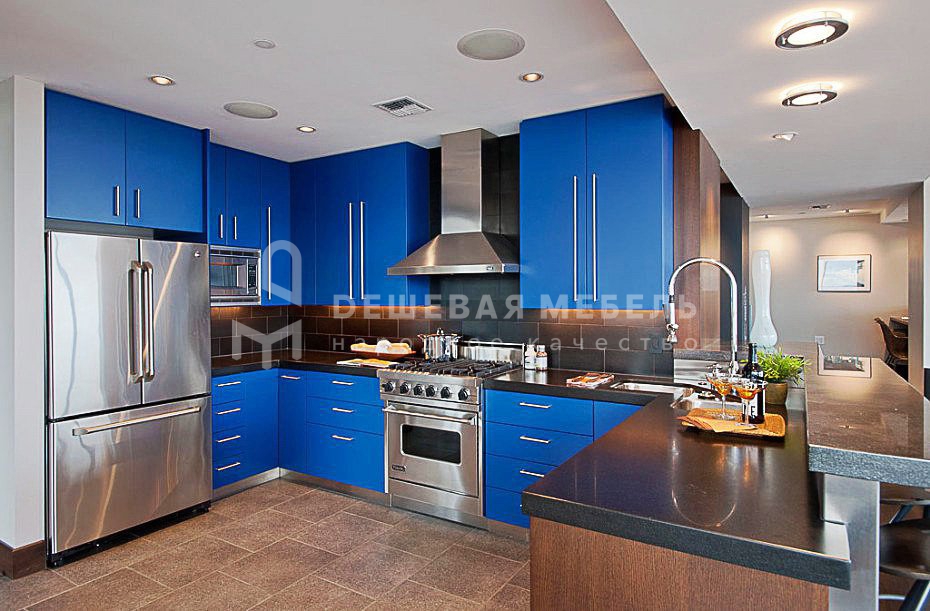 Большая угловая кухня "Вилар арт.2" из синего МДФ